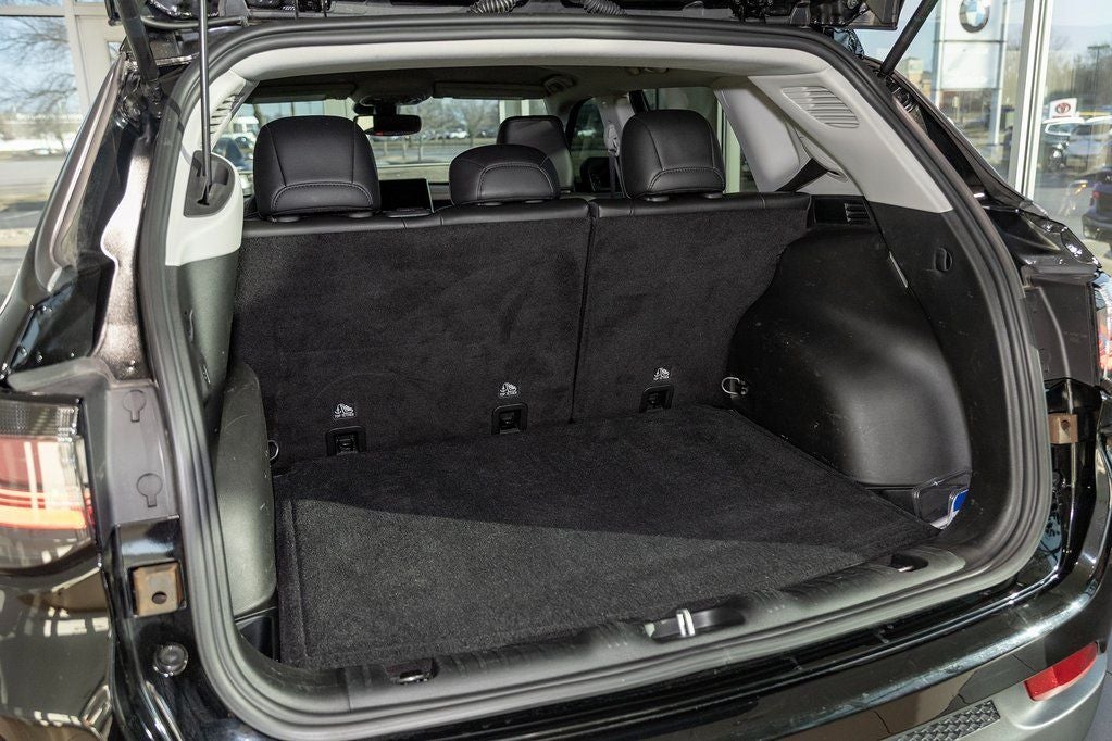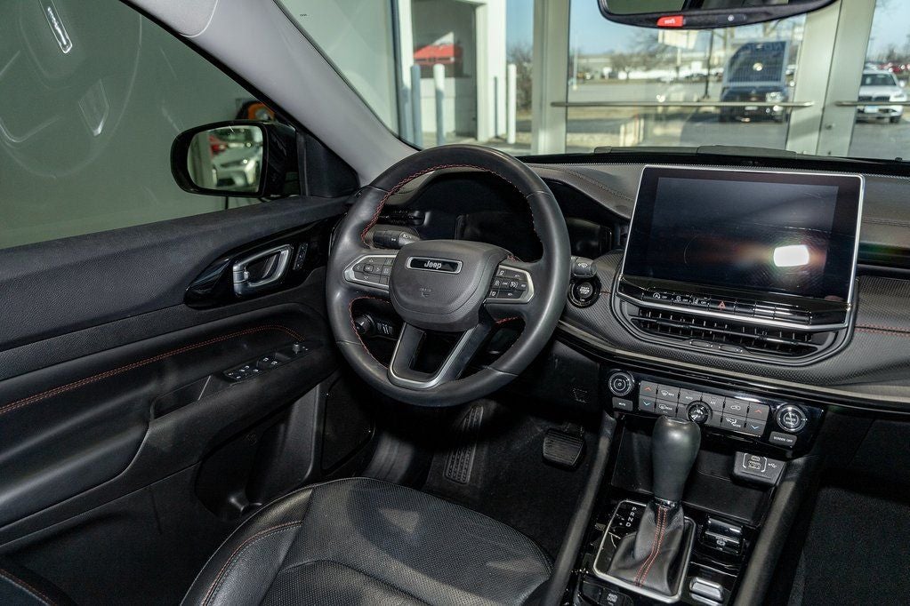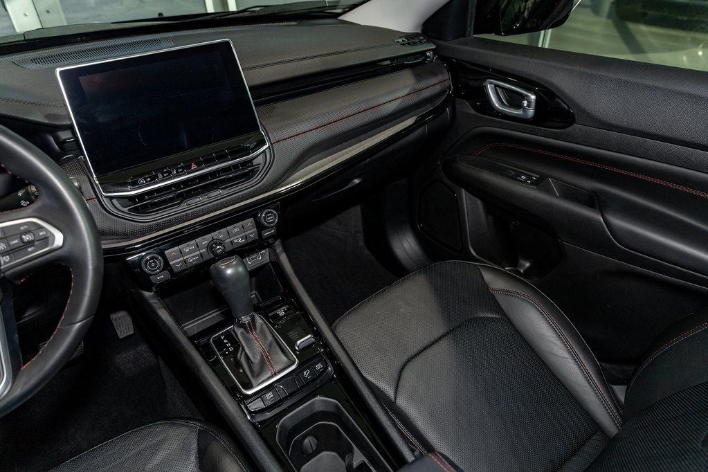 Diamond Black Crystal Pearlcoat 2022 Jeep Compass Trailhawk 4WD 9-Speed 948TE Automatic 4WD, 10.1 Touchscreen Display, 115V Auxiliary Power Outlet, 2nd Row Heated Seats, 2nd Row USB Type A/C Charge Only, 4-Wheel Disc Brakes, 4G LTE Wi-Fi Hot Spot, ABS brakes, Air Conditioning, Alexa Built-In, Alloy wheels, Anti-whiplash front head restraints, Auto High-beam Headlights, Auto-dimming Rear-View mirror, Automatic temperature control, Brake assist, Bumpers: body-color, Cluster 10.25 TFT Color Display, Compass, Connected Travel & Traffic Services, Delay-off headlights, Disassociated Touchscreen Display, Driver door bin, Driver Seat Memory, Driver vanity mirror, Dual front impact airbags, Dual front side impact airbags, Electronic Stability Control, Foot Activated Open 'N Go Liftgate, For Details, Visit DriveUconnect.com, For More Info, Call 800-643-2112, Four wheel independent suspension, Front anti-roll bar, Front Bucket Seats, Front Center Armrest w/Storage, Front dual zone A/C, Front fog lights, Front reading lights, Fully automatic headlights, Global Telematics Box Module (TBM), GPS Navigation, HD Radio, Heated door mirrors, Heated Front Seats, Illuminated entry, Integrated Voice Command w/Bluetooth®, Knee airbag, Leather Wrapped Steering Wheel, LED Low/Highbeam Projector Headlamps, Low tire pressure warning, No Satellite Coverage HI/AK/PR/VI/GU, Occupant sensing airbag, Outside temperature display, Overhead airbag, Overhead console, Panic alarm, ParkView Rear Back-Up Camera, Passenger door bin, Passenger vanity mirror, Power 8-Way Adjust Front Passenger Seat, Power Adjust 8-Way Driver Seat, Power Liftgate, Power steering, Power windows, Premium Leather Trimmed Bucket Seats, Premium LED Fog Lamps, Premium Taillamps, Quick Order Package 2GE, Radio: Uconnect 5 Nav w/10.1 Display, Rain sensing wipers, Rear anti-roll bar, Rear seat center armrest, Rear window defroster, Rear window wiper, Remote keyless entry, Remote Start System, Reversible Carpet/Vinyl Cargo Mat, Roof rack: rails only, Security system, SiriusXM Guardian - Included Trial (B), SiriusXM Radio Service, SiriusXM Satellite Radio, SiriusXM w/360L, Speed control, Split folding rear seat, Spoiler, Steering wheel mounted audio controls, Tachometer, Telescoping steering wheel, Tilt steering wheel, Traction control, Trailhawk Elite Group, Trip computer, Turn signal indicator mirrors, Variably intermittent wipers, Vehicle Information Center, Ventilated Front Seats, Wheels: 17 x 6.5 Painted Diamond Cut Aluminum, Windshield Wiper De-Icer.