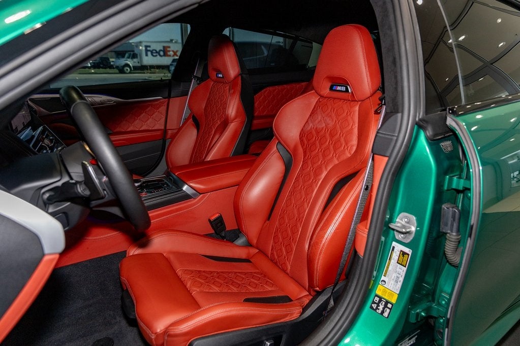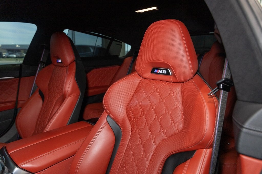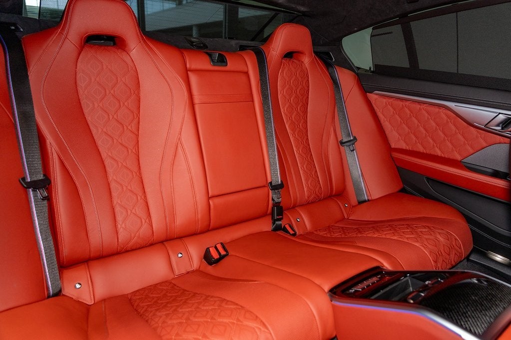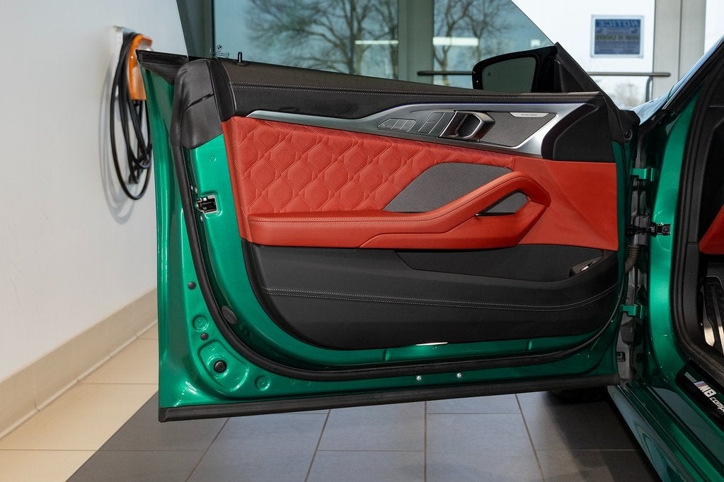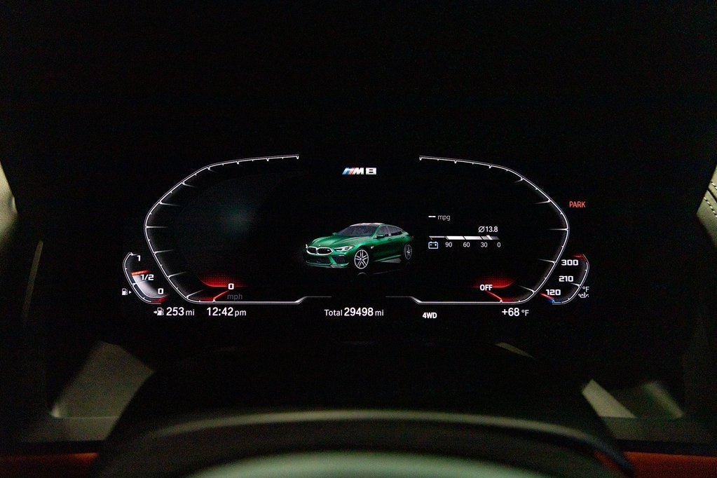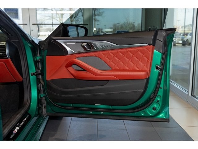 Certified. Clean CARFAX. Isle of Man Green Metallic 2023 BMW M8 Competition AWD 8-Speed Automatic Sport Clean CarFax, 4-Wheel Disc Brakes, ABS brakes, Active Blind Spot Detection, Active Driving Assistant, Active Park Distance Control, Adaptive suspension, Air Conditioning, Alcantara Headliner In Upholstery Color, Alloy wheels, Apple CarPlay & Android Auto Compatibility, Auto High-beam Headlights, Auto tilt-away steering wheel, Auto-dimming door mirrors, Auto-dimming Rear-View mirror, Automatic temperature control, BMW Assist eCall, BMW TeleServices, Brake assist, Bumpers: body-color, Connected Package Pro, ConnectedDrive Services, Delay-off headlights, Door auto-latch, Driver door bin, Driver vanity mirror, Driving Assistance Package, Dual front impact airbags, Dual front side impact airbags, Electronic Stability Control, Emergency communication system: BMW Assist eCall, Exterior Parking Camera Rear, Four wheel independent suspension, Front anti-roll bar, Front Bucket Seats, Front Center Armrest, Front dual zone A/C, Front reading lights, Front Ventilated Seats, Full Merino Leather Upholstery, Fully automatic headlights, Garage door transmitter, harman/kardon Surround Sound System, harman/kardon® Speakers, Heads-Up Display, Heated door mirrors, Heated front seats, Heated Front Seats w/Armrests & Steering Wheel, Heated steering wheel, Illuminated entry, Lane Departure Warning System, Leather steering wheel, Live Cockpit Pro w/Navi, Low tire pressure warning, Lumbar Support, M Compound Brakes w/Red Calipers, Memory seat, Navigation System, Occupant sensing airbag, Outside temperature display, Overhead airbag, Panic alarm, Parking Assistant Plus, Passenger door bin, Passenger vanity mirror, Power door mirrors, Power driver seat, Power passenger seat, Power steering, Power windows, Rain sensing wipers, Rear air conditioning, Rear anti-roll bar, Rear dual zone A/C, Rear Window Blind, Rear window defroster, Rear-View Camera, Remote keyless entry, Security system, Speed control, Speed-sensing steering, Speed-Sensitive Wipers, Split folding rear seat, Spoiler, Sport steering wheel, Standard Emblems, Steering wheel memory, Steering wheel mounted audio controls, Surround View w/3D View, Tachometer, Telescoping steering wheel, Tilt steering wheel, Traction control, Trip computer, Turn signal indicator mirrors, Variably intermittent wipers, Ventilated front seats, Wheels: 20 x 8 Fr & 20 x 9 Rr M Star-Spoke, Wireless Charging.