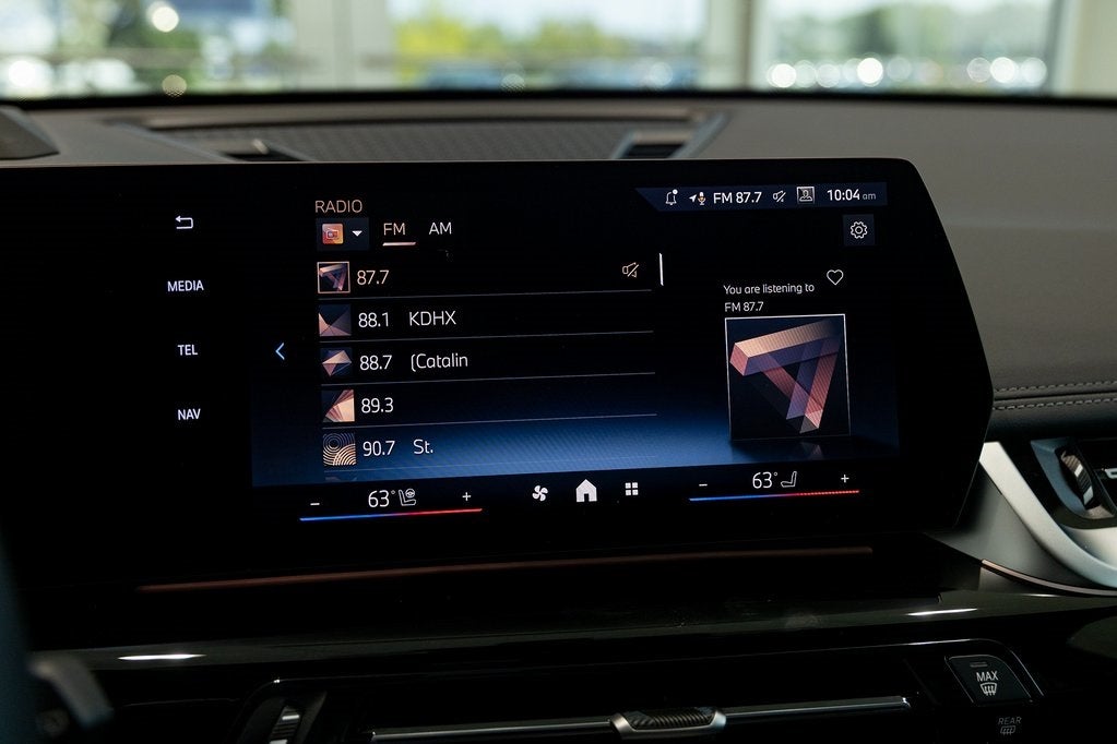 ***CURRENT SERVICE LOANER*** Clean CARFAX. Black Sapphire Metallic 2025 BMW X1 xDrive28i AWD 7-Speed Automatic Clean CarFax, 4-Wheel Disc Brakes, ABS brakes, Air Conditioning, Alloy wheels, Anti-Theft Recorder, Apple CarPlay and Android Auto Compatibility, Apple CarPlay Compatibility, Auto High-beam Headlights, Auto-Dimming Interior and Exterior Mirrors, Auto-Dimming Rear-View Mirror, Automatic temperature control, BMW Assist ECall, BMW Digital Key Plus with UWB, BMW TeleServices, Brake assist, Bumpers: body-color, Comfort Access Keyless Entry, Compass, Delay-off headlights, Driver door bin, Driver vanity mirror, Dual front impact airbags, Dual front side impact airbags, Electronic Stability Control, Emergency communication system: BMW Assist eCall, Exterior Parking Camera Rear, Four wheel independent suspension, Front anti-roll bar, Front Bucket Seats, Front Center Armrest w/Storage, Front dual zone A/C, Front reading lights, Harman/Kardon Premium Sound System, Head-Up Display, Heated door mirrors, Heated Front Seats, Heated front seats, Heated Steering Wheel, Illuminated entry, Knee airbag, Leather steering wheel, Live Cockpit Pro, Low tire pressure warning, Memory seat, Navigation, Navigation System, Occupant sensing airbag, Outside temperature display, Overhead airbag, Overhead console, Panic alarm, Panoramic Moonroof, Parking Assistant Plus, Passenger door bin, Passenger vanity mirror, Perforated Veganza Upholstery, Personal ESIM 5G, Power door mirrors, Power driver seat, Power Front Seats, Power Liftgate, Power passenger seat, Power steering, Power windows, Premium Content 1, Rain sensing wipers, Rear anti-roll bar, Rear reading lights, Rear seat center armrest, Rear window defroster, Rear window wiper, Remote Engine Start, Remote keyless entry, Security system, Speed control, Speed-sensing steering, Speed-Sensitive Wipers, Split folding rear seat, Spoiler, Steering wheel mounted audio controls, Surround View with 3D View, Tachometer, Technology Package, Telescoping steering wheel, Tilt steering wheel, Traction control, Trip computer, Turn signal indicator mirrors, Variably intermittent wipers, Wheels: 18 x 7.5 V-Spoke Bi-Color, Widescreen Display, Wireless Device Charging.