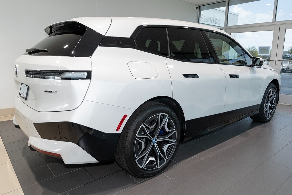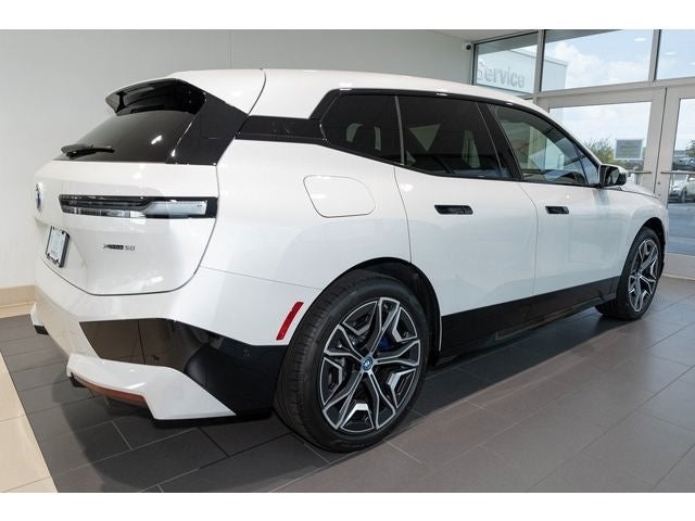***CURRENT SERVICE LOANER*** Clean CARFAX. Mineral White Metallic 2025 BMW iX xDrive50 AWD Single-Speed Automatic Clean CarFax, 4-Wheel Disc Brakes, ABS brakes, Active Cruise Control w/Stop & Go, Active Driving Assistant Pro, Active Lane Keeping Assistant, Air Conditioning, Alloy wheels, AM/FM Stereo, Apple CarPlay & Android Auto Compatibility, Apple CarPlay Compatibility, Auto High-beam Headlights, Auto tilt-away steering wheel, Auto-dimming door mirrors, Auto-dimming Rear-View mirror, Automatic temperature control, BMW Assist eCall, BMW TeleServices, Brake assist, Bucket Seats, Bumpers: body-color, Compass, Connected eDrive Services, Connected Package Pro, ConnectedDrive Services, Delay-off headlights, Driver door bin, Driver vanity mirror, Driving Assistance Professional Package, Dual front impact airbags, Dual front side impact airbags, Electronic Stability Control, Emergency communication system: BMW Assist eCall, Exterior Parking Camera Rear, Four wheel independent suspension, Front anti-roll bar, Front Bucket Seats, Front Center Armrest, Front dual zone A/C, Front reading lights, Fully automatic headlights, Garage door transmitter, harman kardon Surround Sound System, Heated door mirrors, Heated Front Seats, Heated front seats, Heated steering wheel, Hi-Fi Sound System, Highway Assistant, Iconic Sounds Electric, Illuminated entry, Interior Camera, Interior Design Package, Leather steering wheel, Live Cockpit Pro, Low tire pressure warning, M Dark Silver Interior Trim, M Steering Wheel, Memory seat, Multi-Functional Front Seats w/Massage, Natural Interaction, Navigation, Navigation System, Occupant sensing airbag, Outside temperature display, Overhead airbag, Panic alarm, Parking Assistant Plus, Parking Assistant Professional, Passenger door bin, Passenger vanity mirror, Perforated SensaTec Upholstery, Personal eSIM 5G, Power door mirrors, Power driver seat, Power Liftgate, Power passenger seat, Power steering, Power windows, Premium Package, Rain sensing wipers, Rear air conditioning, Rear anti-roll bar, Rear dual zone A/C, Rear reading lights, Rear seat center armrest, Rear window defroster, Rear window wiper, Remote keyless entry, Security system, SiriusXM w/360L & 1 Yr Platinum Plan Subscription, Specific Additional Contents in Sport Package, Speed control, Speed-sensing steering, Speed-Sensitive Wipers, Split folding rear seat, Spoiler, Sport Package, Sport Package (330), Steering wheel memory, Steering wheel mounted audio controls, Surround View w/3D View, Telescoping steering wheel, Tilt steering wheel, Traction control, Traffic Jam Assistant, Trip computer, Turn signal indicator mirrors, Variably intermittent wipers, Wheels: 21 x 9 Aero Bicolor (Style 1012), Wheels: 22 x 9.5 Aero Bicolor (Style 1021), Wireless Device Charging.